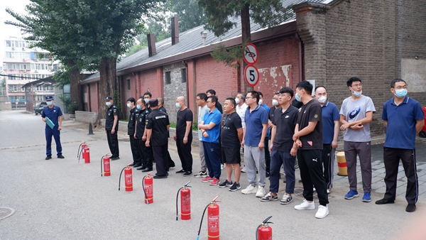 北京一二零一公司立足生产企业安全管理实际,按照北京市“一警六员”消防实操要求,制定了消防演练方案,安全配置模拟火源、消防器具,邀请海淀支队双榆树中队教官进行现场消防知识培训,现场讲解灭火器和消火栓的使用方法,达到“小火会用灭火器、大火会用消火栓”的要求,使受培训人员成为“见火不慌、抬手就灭”的准消防员。